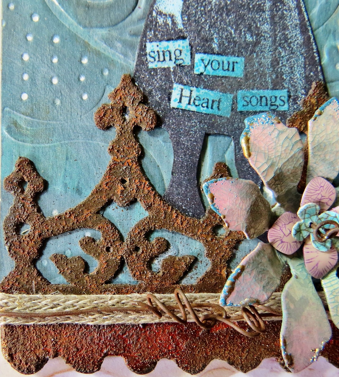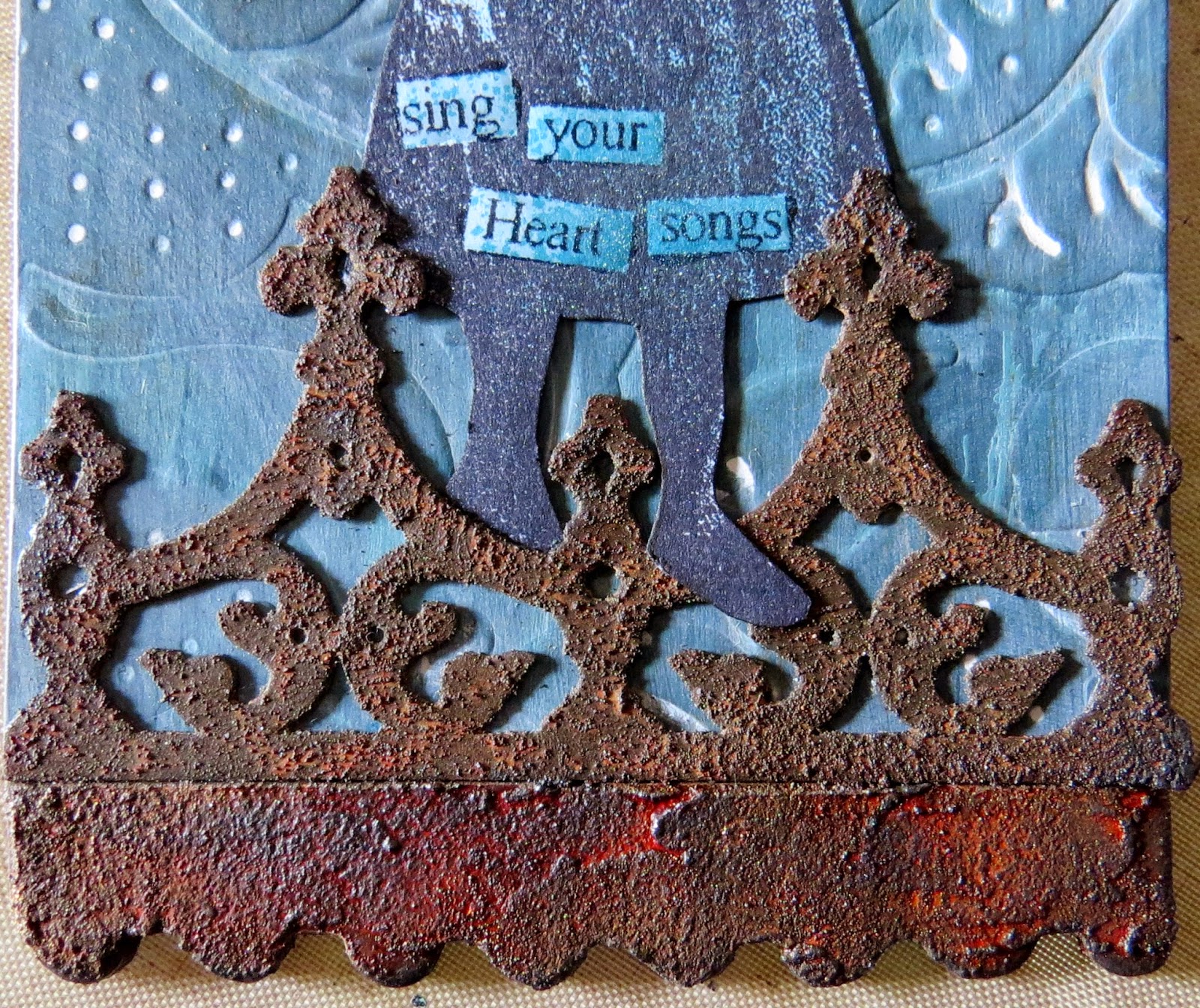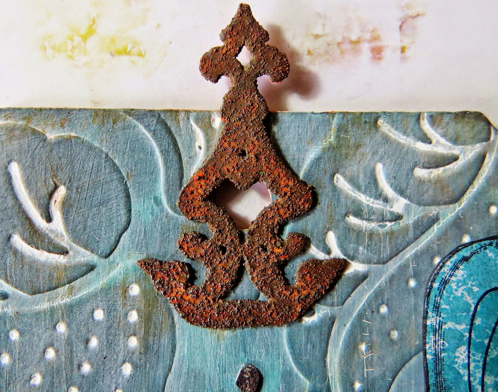 I decided to use rusty elements to highlight a tag which I have given a textured patina finish.