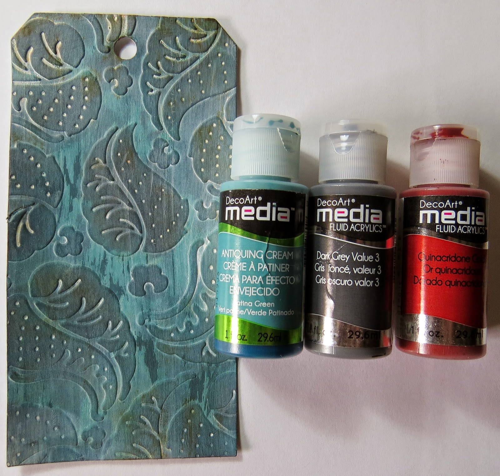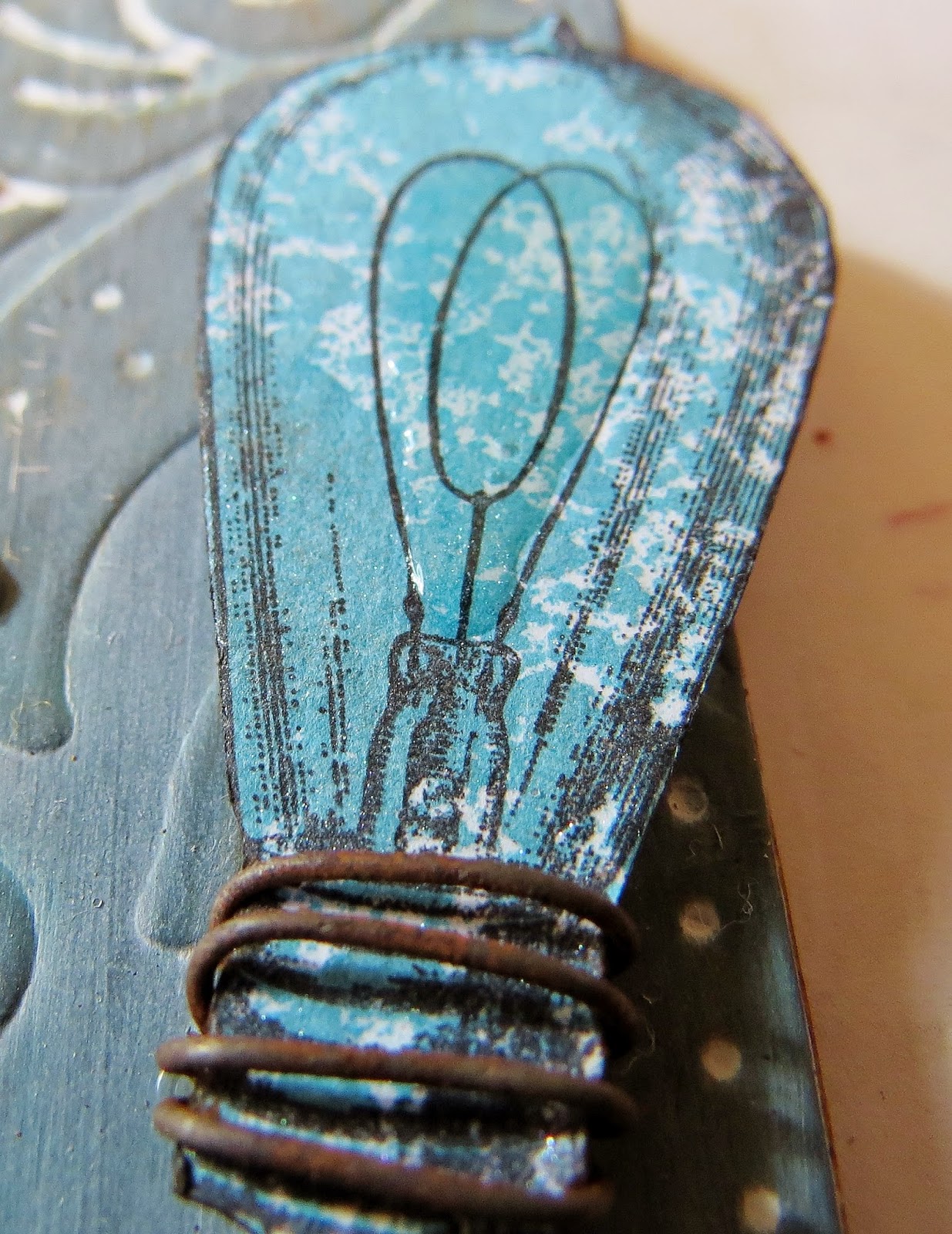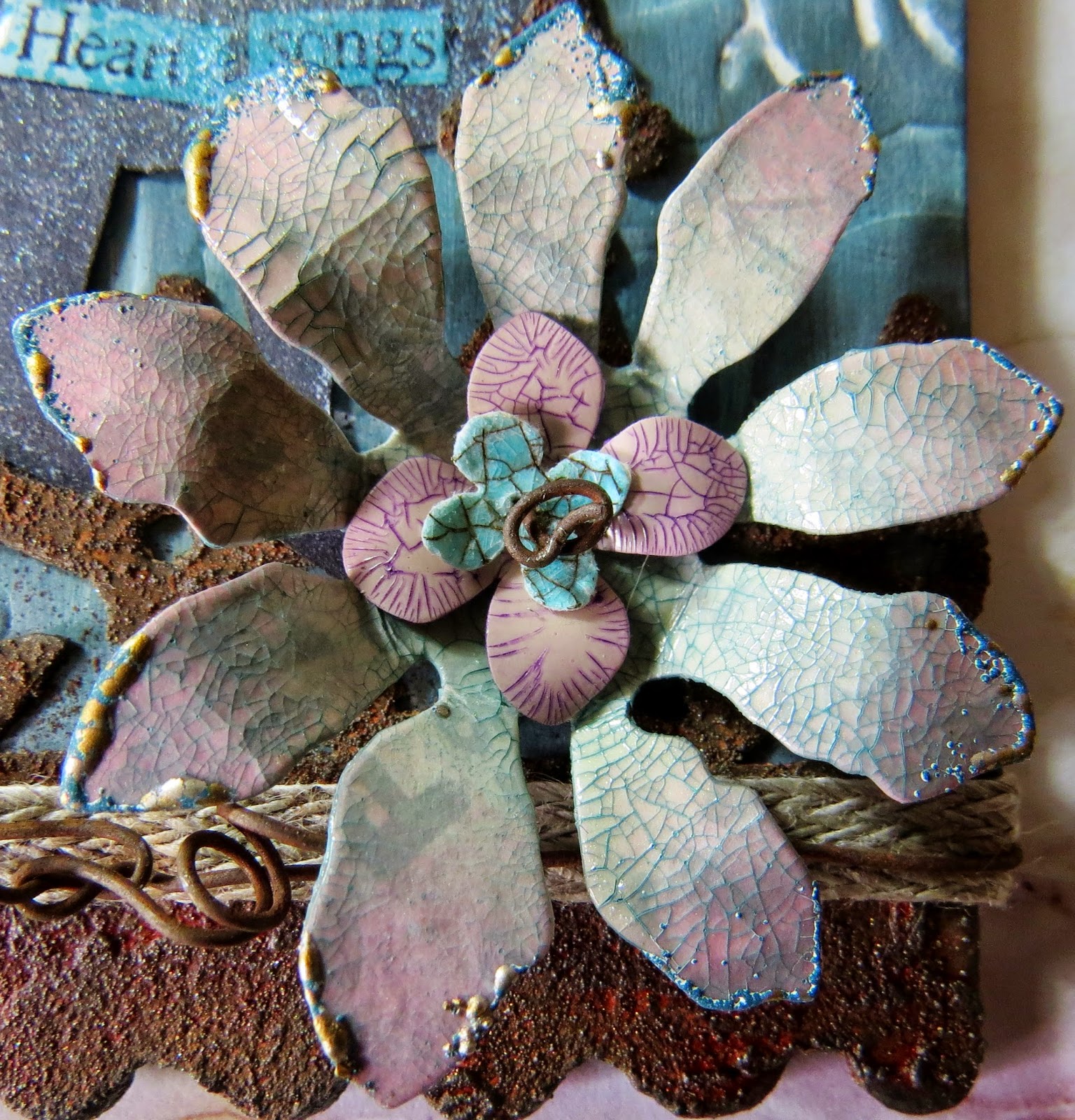 I decided to use rusty elements to highlight a tag which I have given a textured patina finish.
