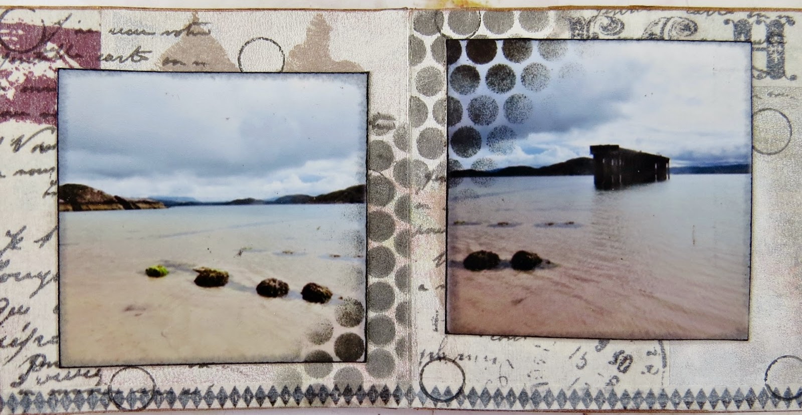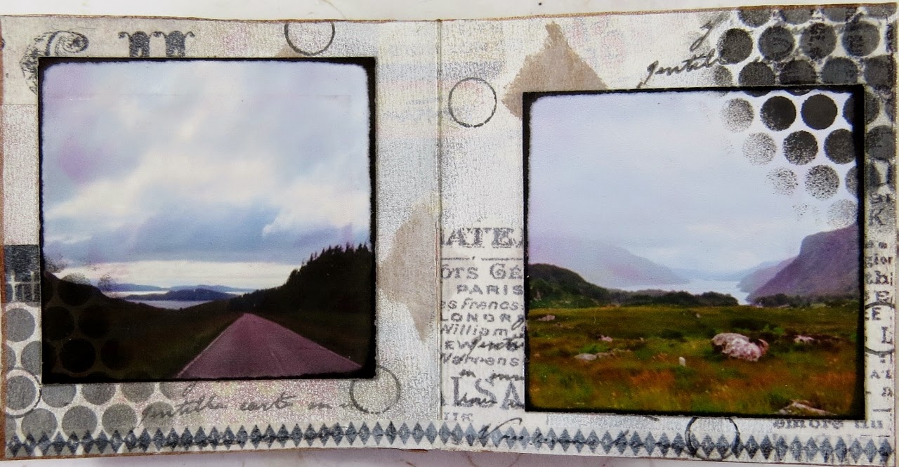 | Next job is to print out the chosen photos to size and cut each out from the sheet. The edges were sponged with archival ink to give them a 'framed' appearance. |
