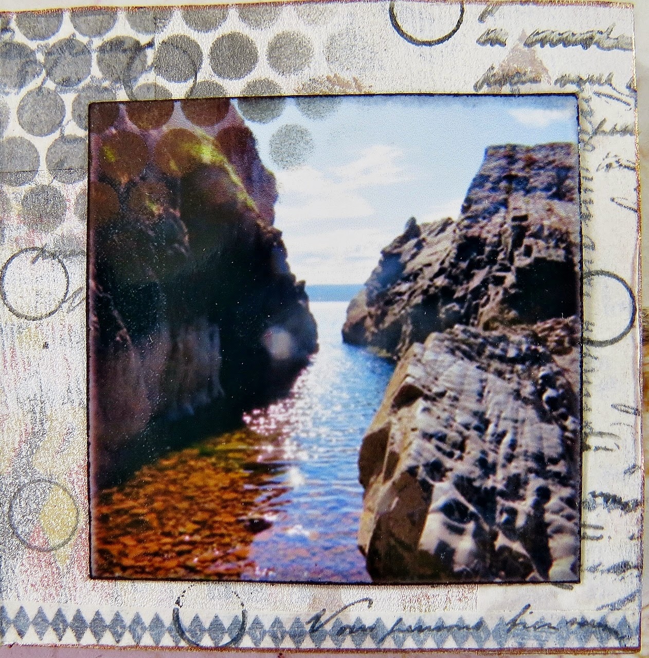 Note: if you don't like scrapbooking or are no photographer, the focal image can also be replaced by a cut out (or transferred) nature photograph from a postcard or magazine for example'.