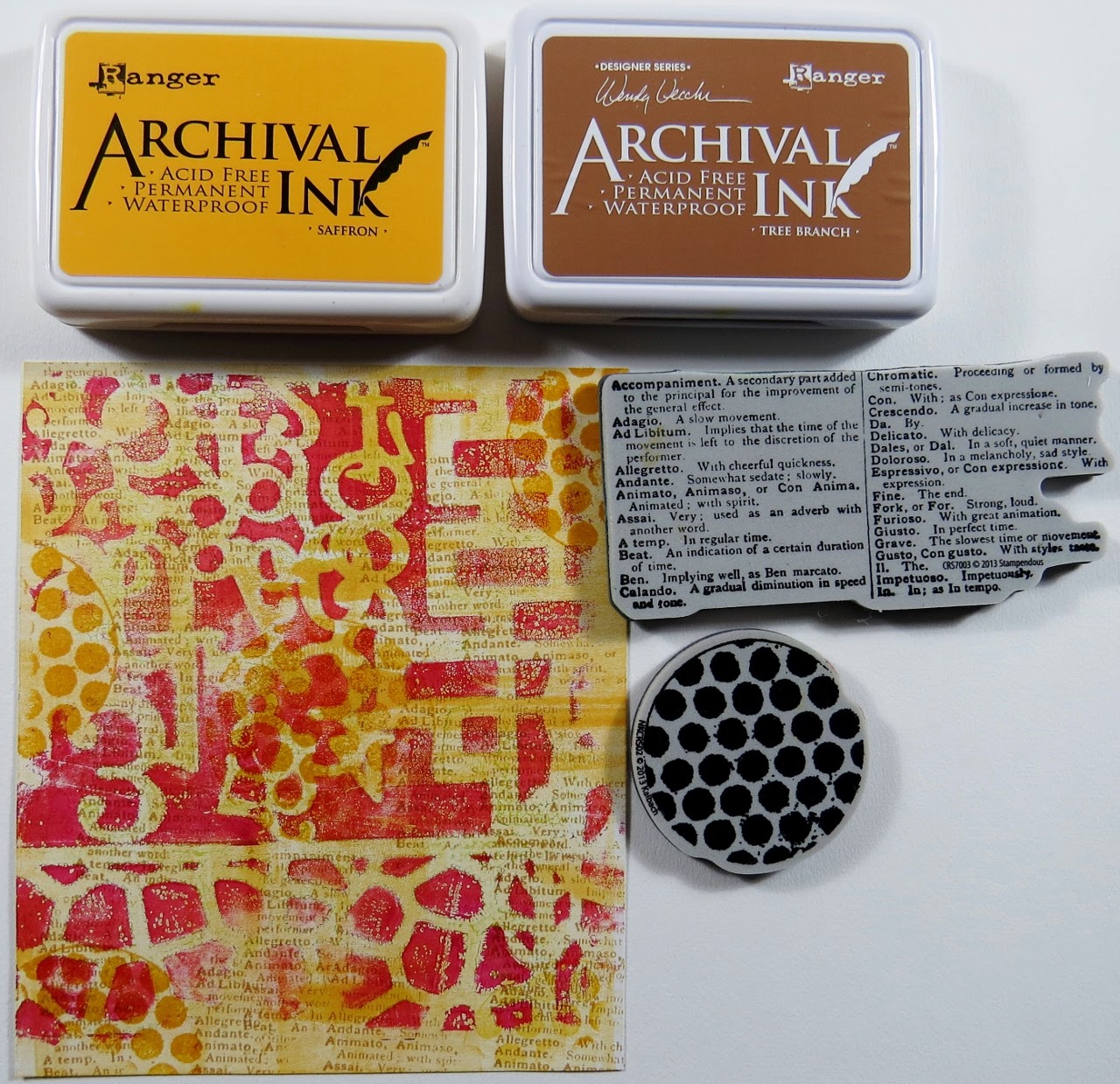 | The circular marks were made using pen lids with Chalky paint followed by transparent yellow iron oxide. |