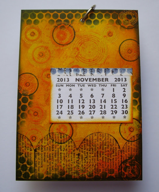 Craft Barn Calendar Challenge and the theme this week is circles. My brain managed to compute this into a stamped page with embossing and a little stencilling. I've chosen a recently used colour palette because I rather like it and I thought it would be a good choice to brighten up a dreary November day. . . . . .