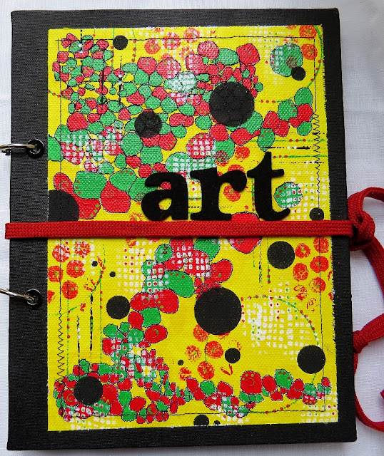 I loved the freedom I found whilst making this journal. The stitching was entirely random and was such fun to do. I adore bright colour so I was very happy to use this in your face palette and I feel it is really relevant to a journal which I shall be using for an on-line art course this year. I've got a commercially produced one too but this home made journal is going to be my very special book for all kinds of stuff over the coming year.