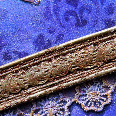 The decorative metal band is part of an old bracelet I bought in a charity shop. This has been given a rust like finish using texture sand modelling paste, grey and quinacridone gold paint.