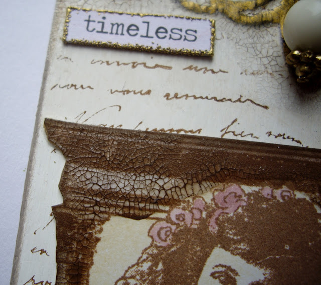 Here's the tag I made using two embossing folders, stamping, crackle, distress inks, acrylic paint and some handmade flowers (the pink ones, not the white!) amongst other things: