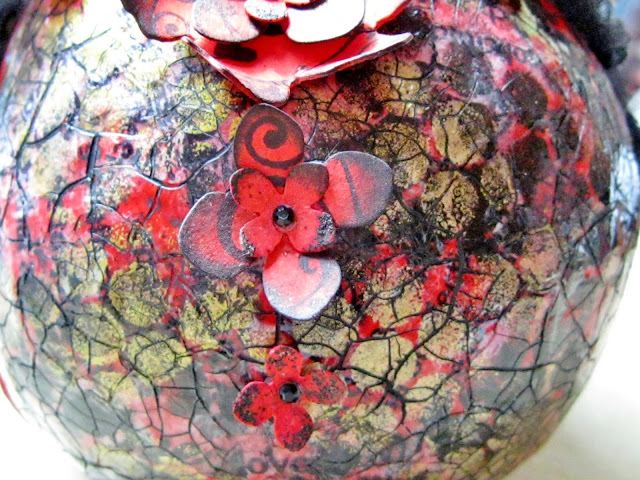 For my 'Share The Love' piece, I've chosen to lean rather towards the gothic. You will be forgiven if you think it's Halloween time here again but I just couldn't resist giving a little brown paper skull a makeover for this challenge. The skull has been hanging around since last year because I never got round to doing anything with it. I knew I wanted to make a 'dark' valentine offering and had the skull in mind. My sister came to visit last weekend and we discussed this challenge and she said 'what about your skull?' and that confirmed the idea in my mind. (Thanks Sandie!!).