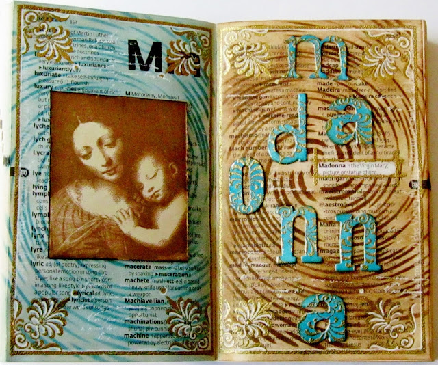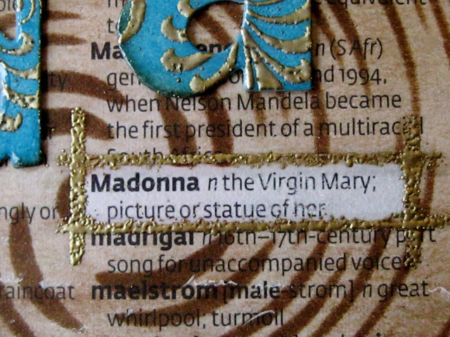 | As usual, I have left the definition visible although it's a little scuffed too but it is a second hand book after all! To add interest a border was added using gold embossing powder. |