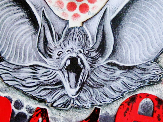 I particularly dislike spiders to the point that I don't even like looking at pictures of them or seeing them on tv so I couldn't choose to use those for my 'bete noire' page! Instead, I have chosen bats. I know they can look so sweet hanging upside down to sleep but if you're out in the dark and they swoop around your head it's not a pleasant experience! I would never do anything to harm them but neither would I engineer a visit with them!
