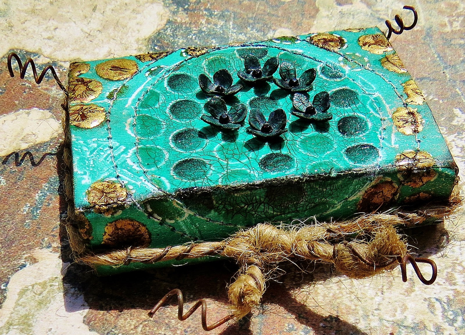 | A tiny little matchbox sized keepsake box. I found this really challenging because the piece is so small and I wanted to pack it full of techniques - well, some techniques at least! |