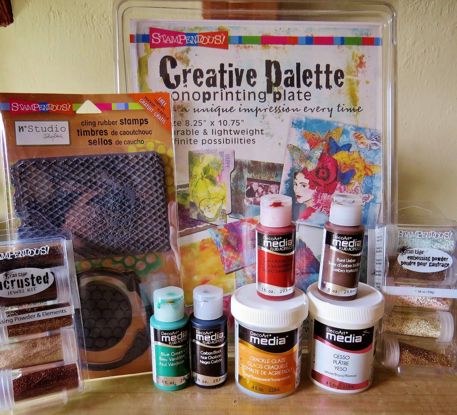 DecoArt creates so many fantastic paint products, our team was excited to try so many! We know you'll be stunned when you see what these great products add to your stamping! When you combine them with Princeton Artist Brushes and Catalyst Wedges used on the Stampendous Creative Palette, well WOW!